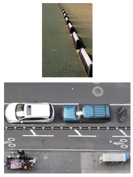 Note: Make sure the sloped side of the product is facing the bike lane and the steep side of the product is facing vehicle traffic.