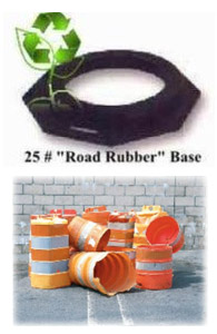 Manufactured out of 100% post consumer recycled rubber and weighing 25 pounds, the "ROAD RUBBER" Channelizer Base meets all state and federal specifications and fits ALL Traffic Model 18000 Two Piece Channelizer Drums. |