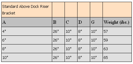 Choose one of the following styles of Above Dock Riser Brackets made from ½" thick steel:
