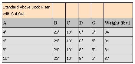 A, B, C, D, & G dimensions required when ordering. Specify if dock bumper is welded to riser.