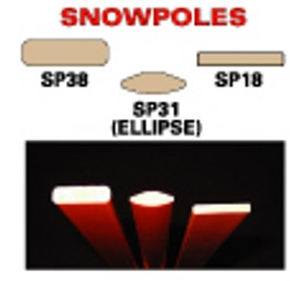 Fiberglass properties and test procedures of fiberglass reinforced iso-polyester marker posts and rectangular snow poles with ultra violet light inhibitor. Composite fiberglass snowploes and marker posts improve trail, cross country skiers, snowshoers and snowmobiles.