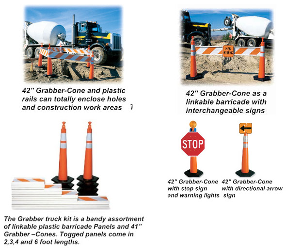 - Available with keyhole slots and plastic barricade panel (42'' Grabber-Cone only)