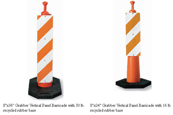 8''x36'' Grabber Vertical Panel Barricades with messages and 16 lb. recycled rubber bases. Contact us for complete list of available legends |