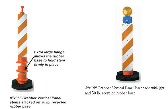 Stackable Stem The Grabber VerticalPanel Barricade stem with its flexible plastic panels, can be stacked for storage as well as transporting to and from the job site. |