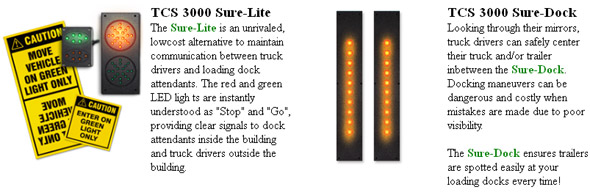 The Sure-Lite complete with The Sure-dock is an unparalleled illuminating system for loading docks and other hazardous high traffic areas and are manufactured with high quality materials to provide years of trouble, maintenance, and service free operation.
